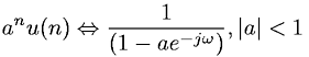 a^n u(n) \Leftrightarrow \frac{1}{{(1 - ae^{ - j\omega } )}},\left| a \right| < 1
